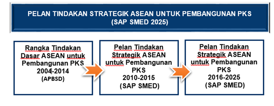 Bermula Januari 2014, Kumpulan Kerja PKS ASEAN telah membangunkan Pelan Tindakan Strategik ASEAN untuk Pembangunan PKS 2016-2025 (SAP SMED 2025).